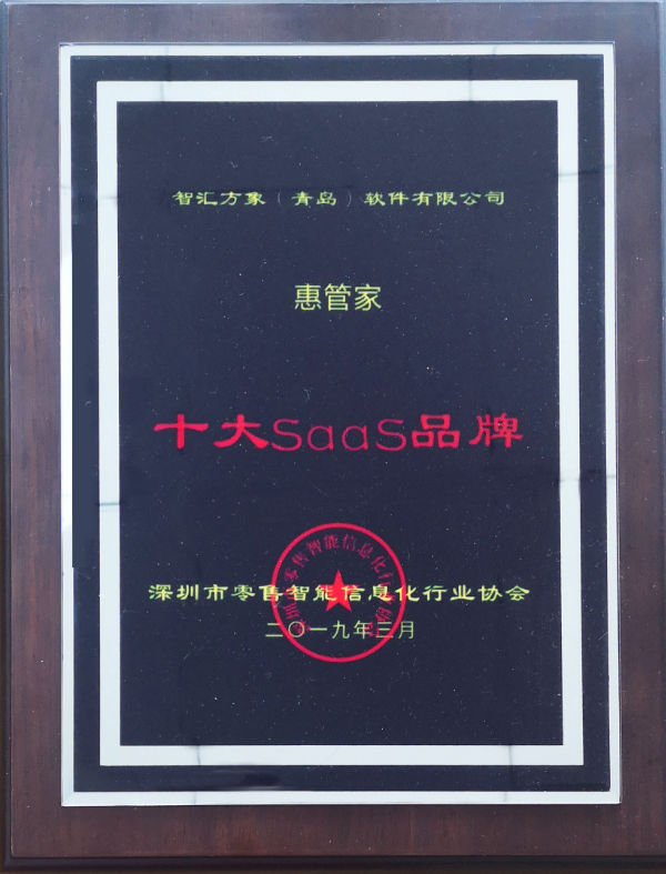 荣获深圳市零售智能信息化行业协会十大SaaS品牌