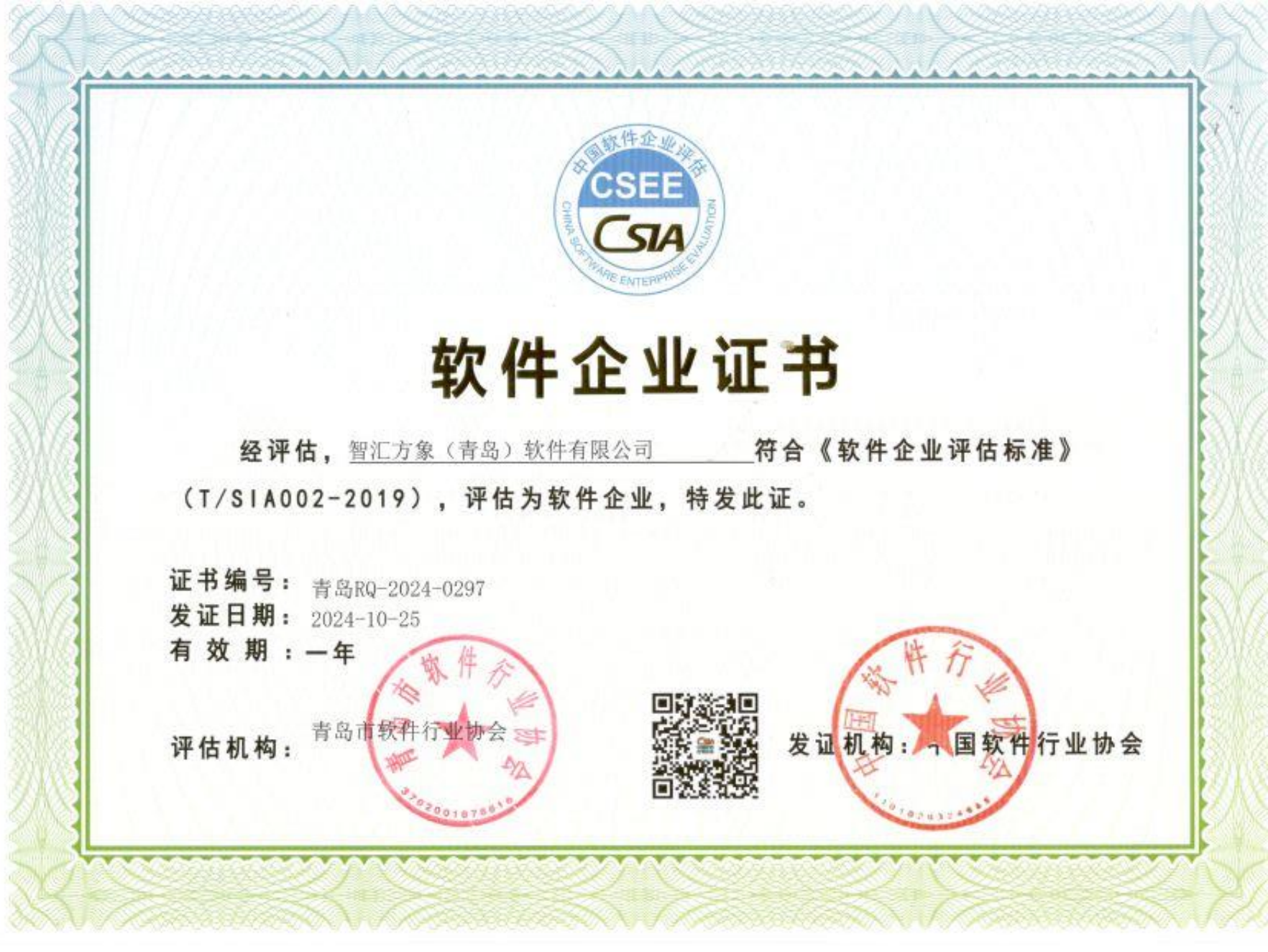 智汇方象软件企业证书